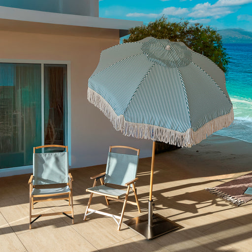 Playa - Chaise de plage en bois de hêtre naturel et polyester bleu 64% de réduction