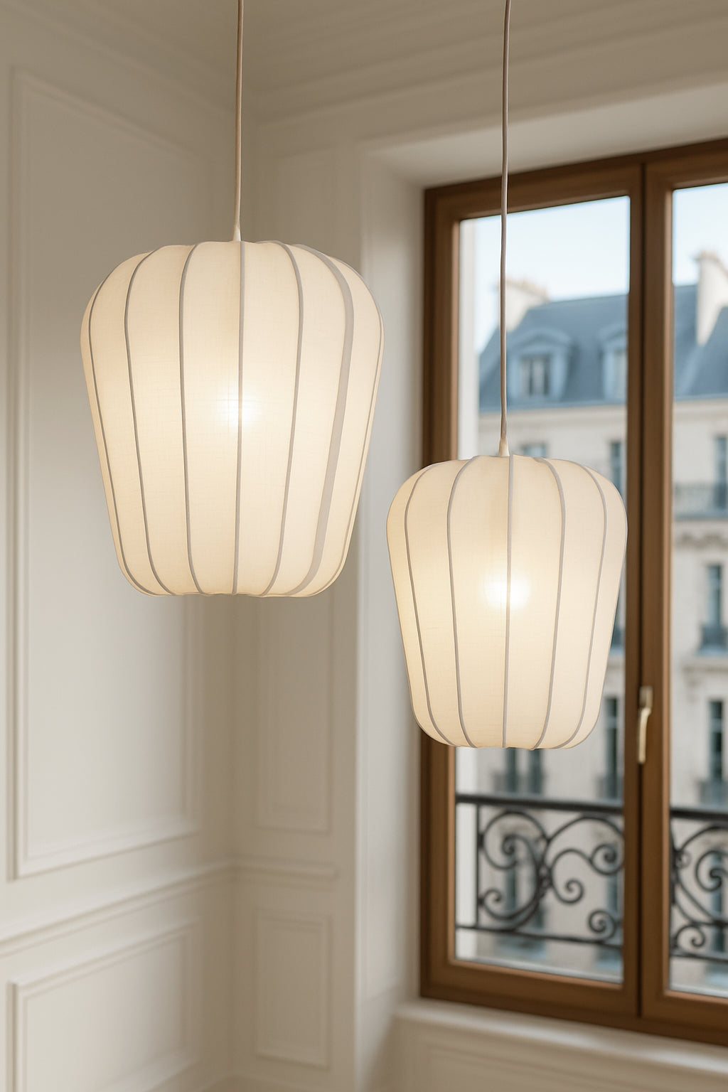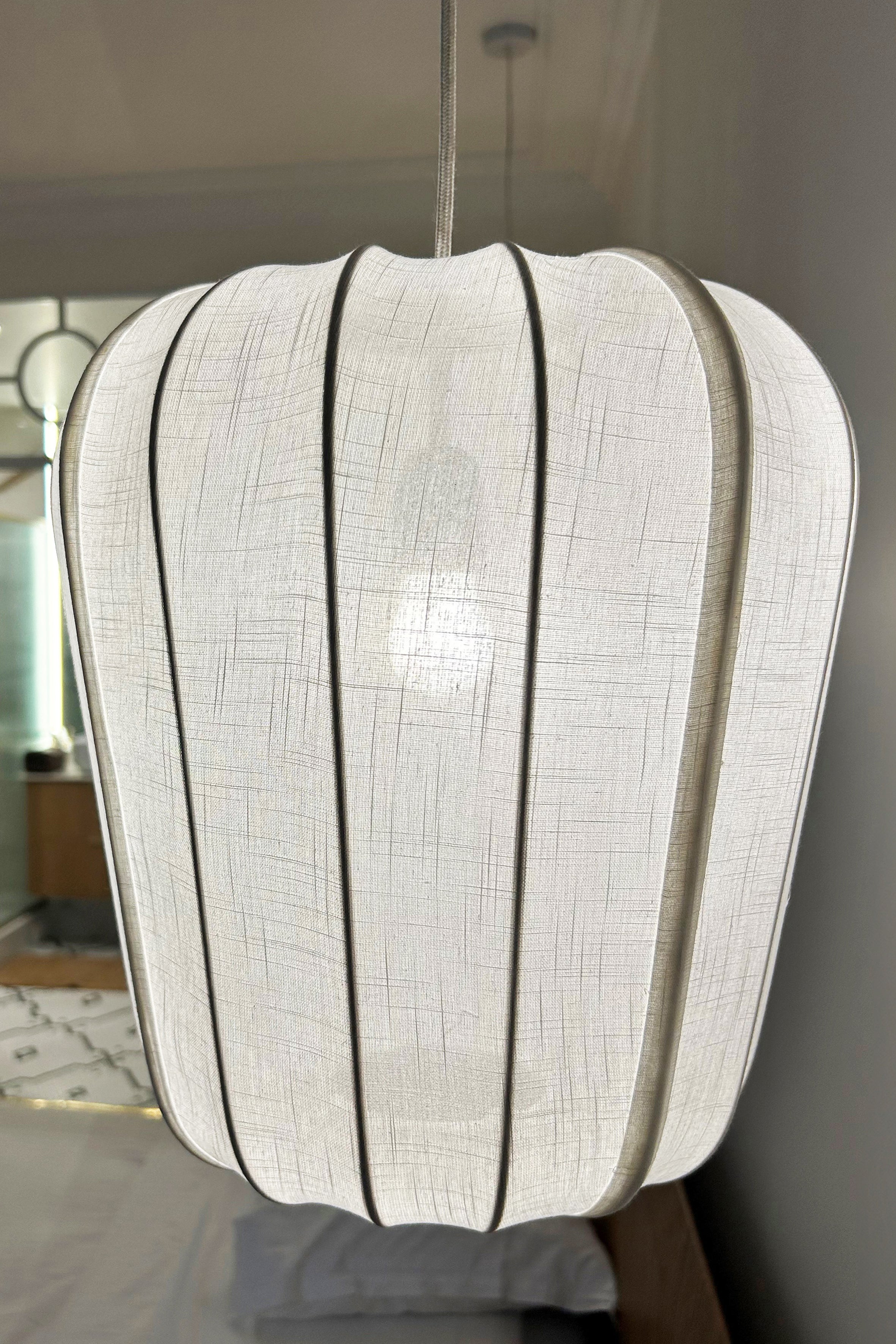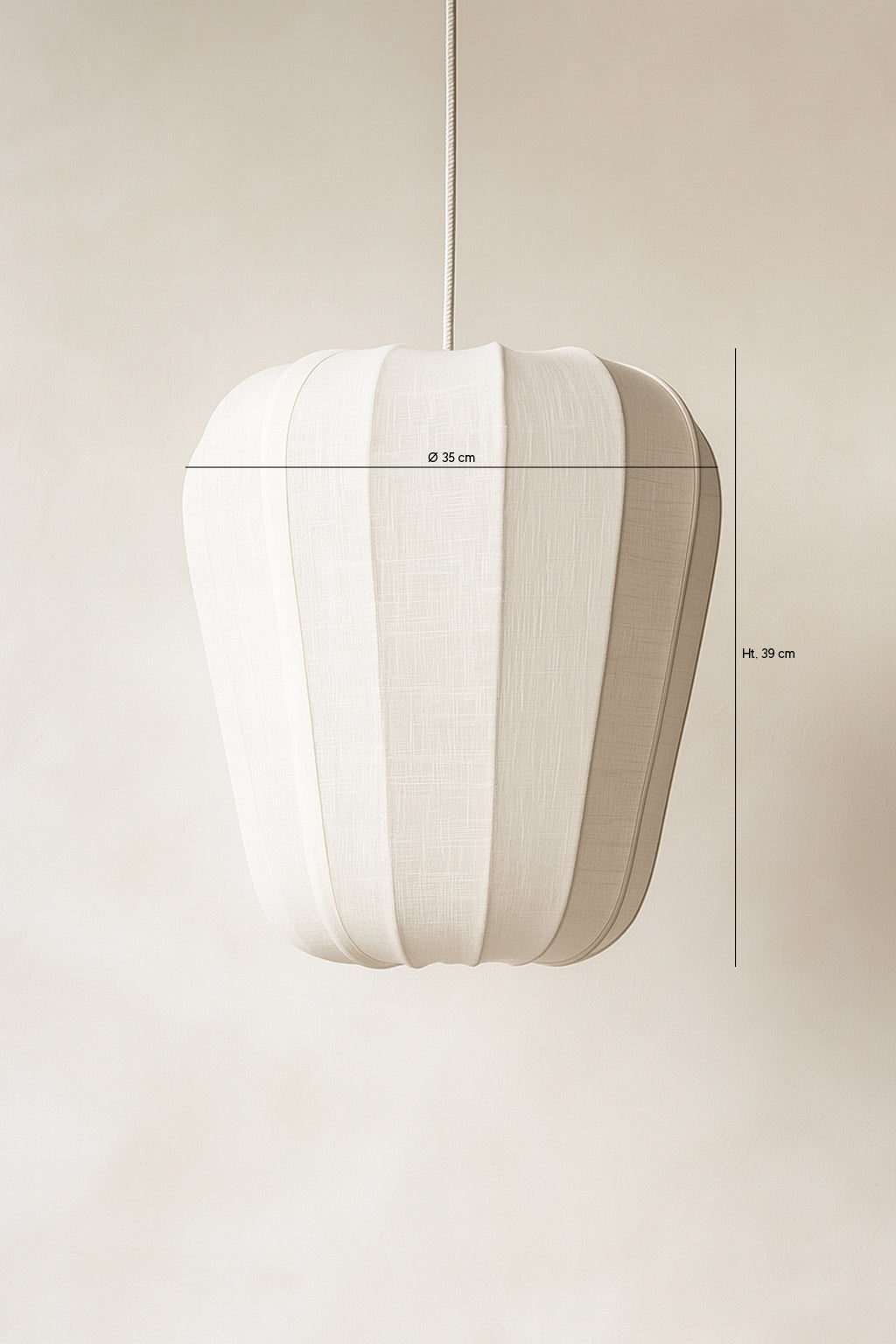 La forme légèrement évasée et les lignes courbes du tissage en coton apportent une touche de douceur et de fluidité. Grâce à son design élégant et ses dimensions moyennes, cette suspension est parfaite pour divers espaces, tels que le salon, la salle à manger, la chambre à coucher ou même un bureau. Ses dimensions de 35 cm de diamètre et 39 cm de hauteur en font une pièce parfaitement proportionnée pour divers espaces.