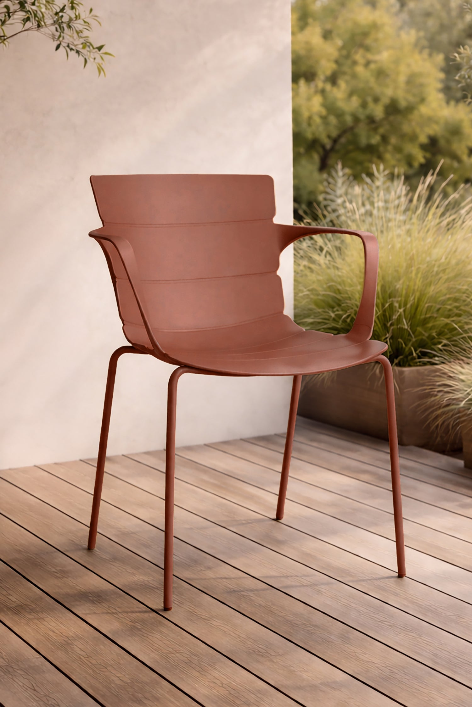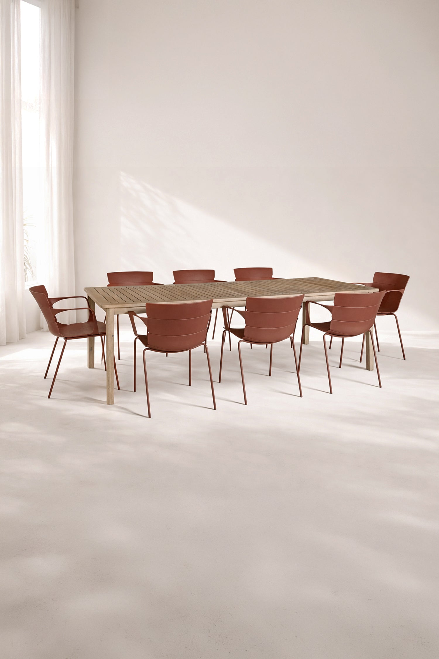 Montauk - Ensemble table avec 8 fauteuils en polypropylène brique