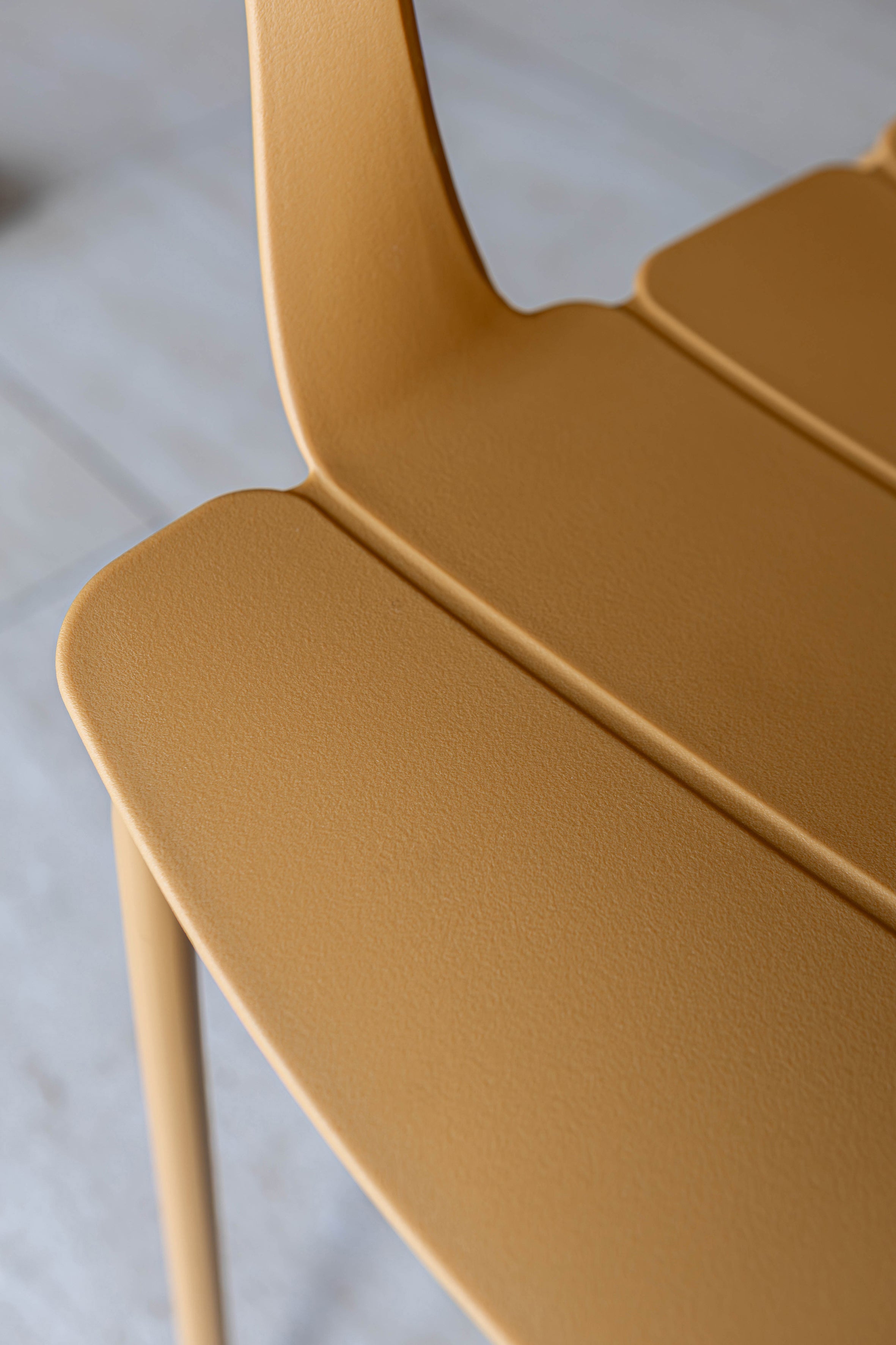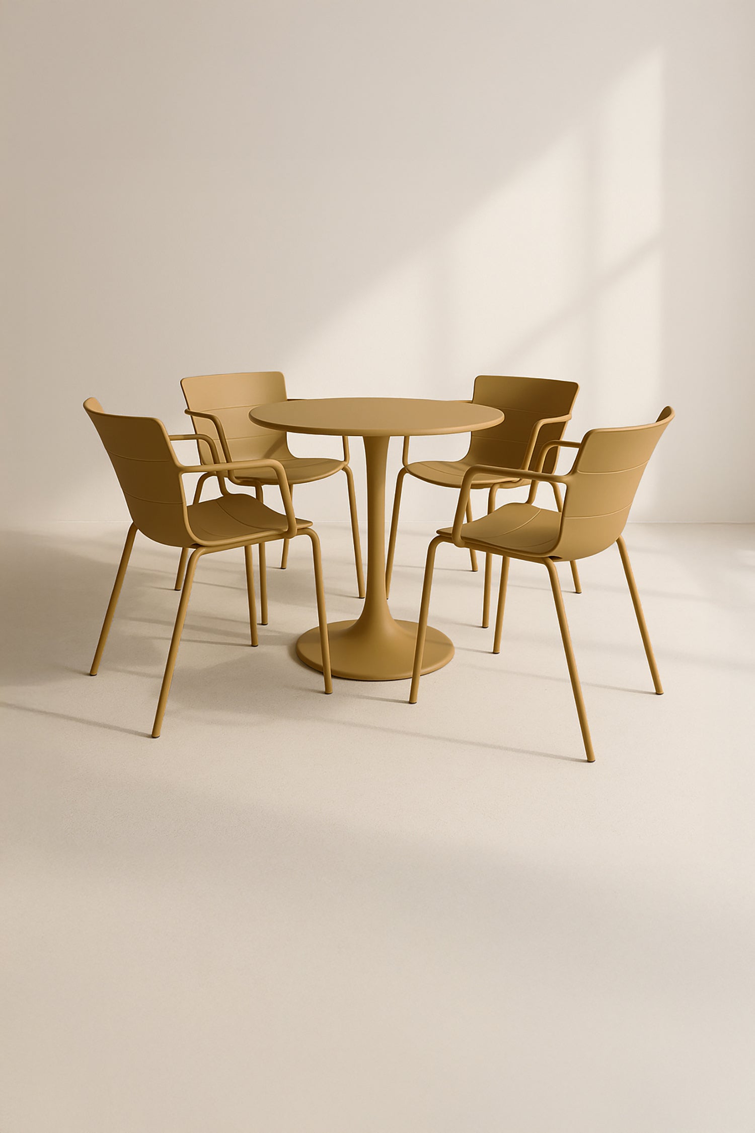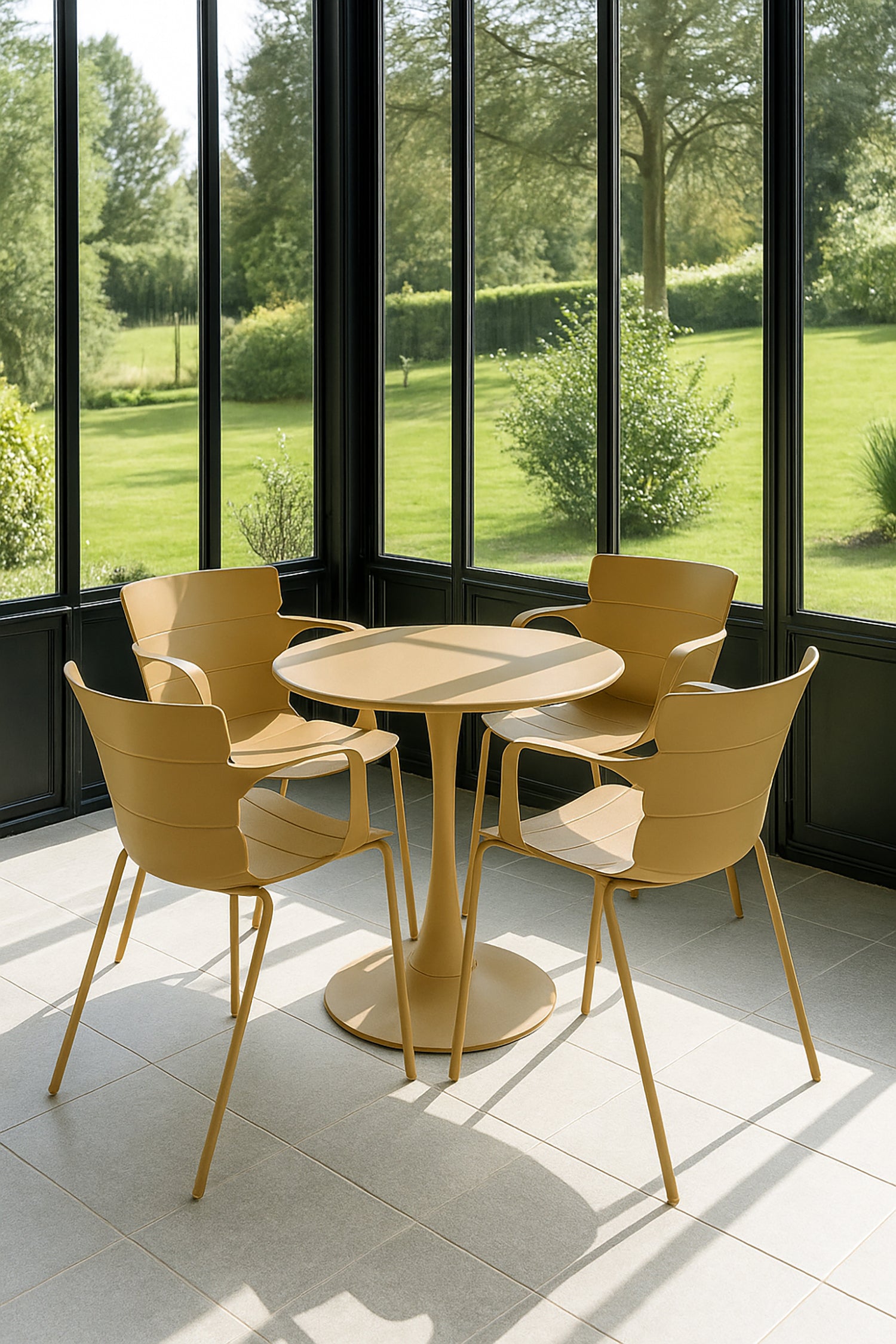 Montauk - Ensemble table et 4 fauteuils de table intérieur en polypropylène et métal ocre