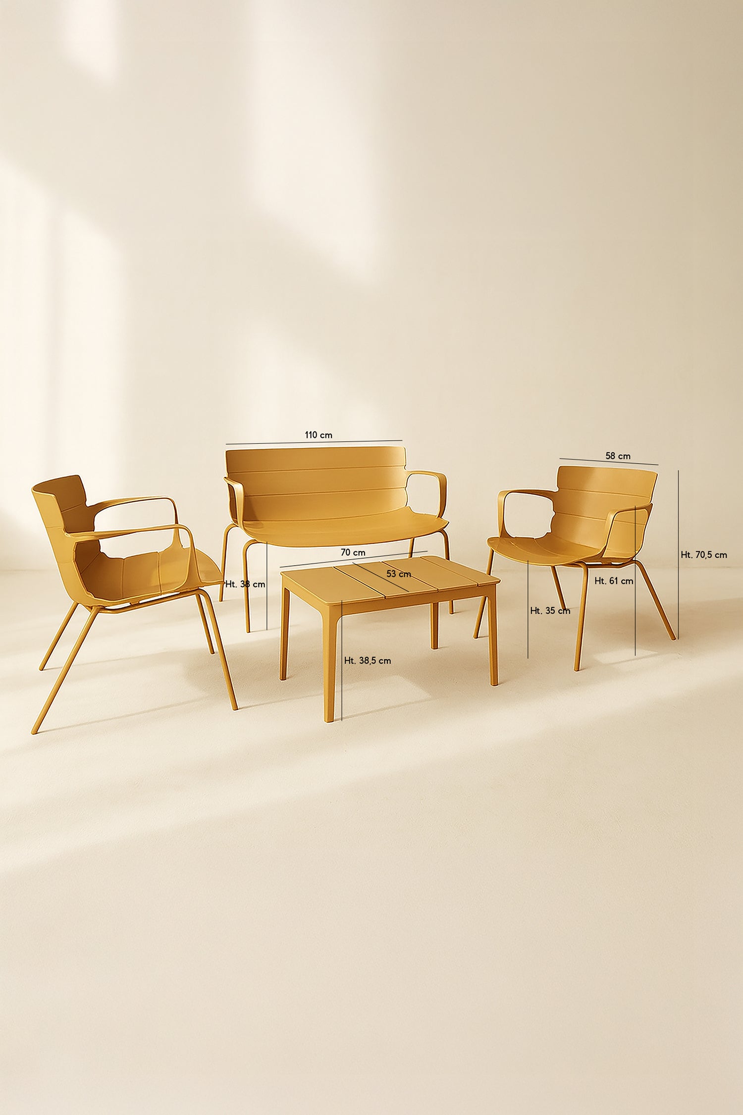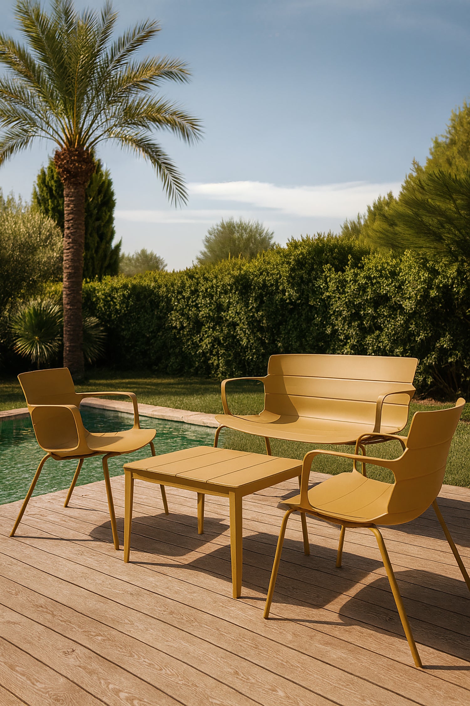 Montauk - Salon de jardin en polypropylène et métal ocre