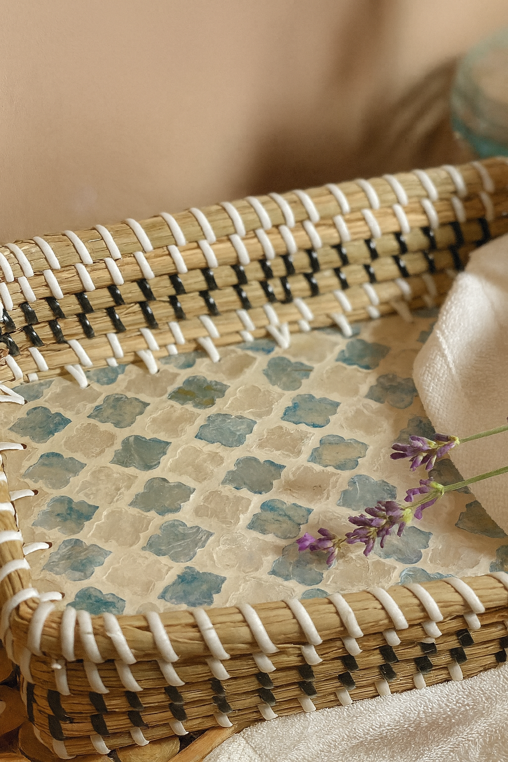 Paros - Plateau rectangulaire en jonc de mer et nacre
