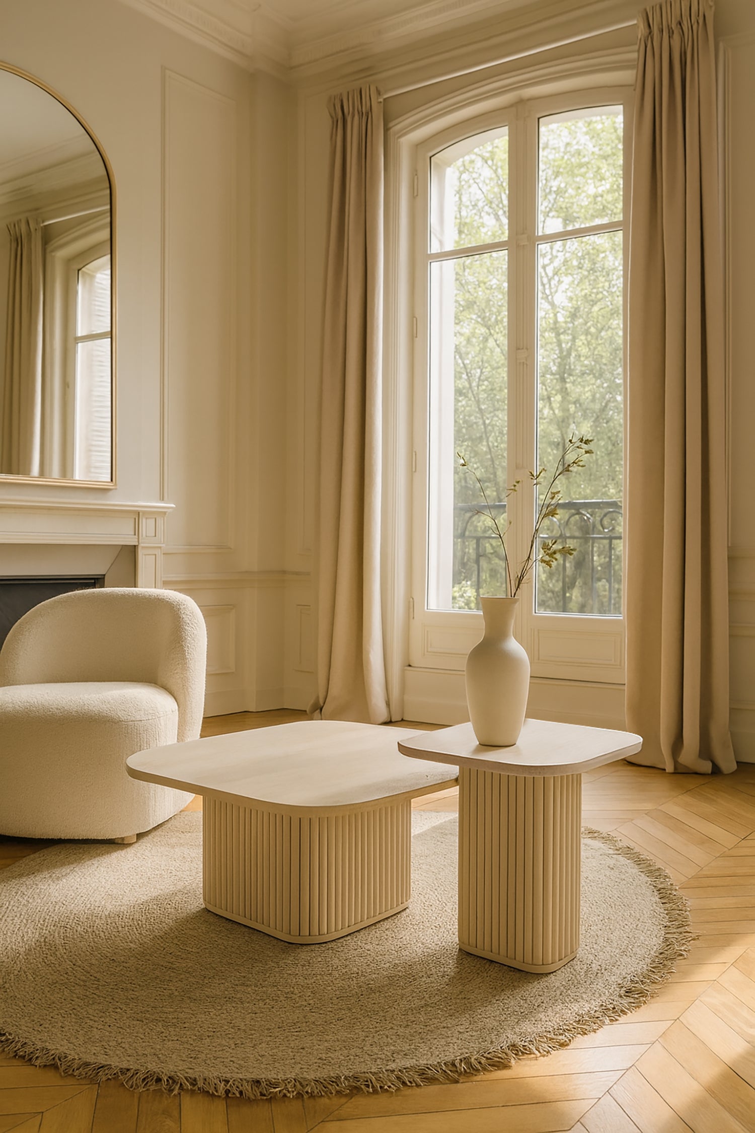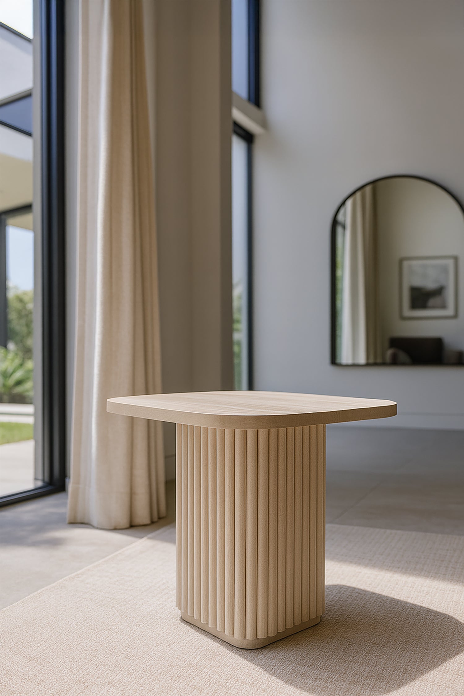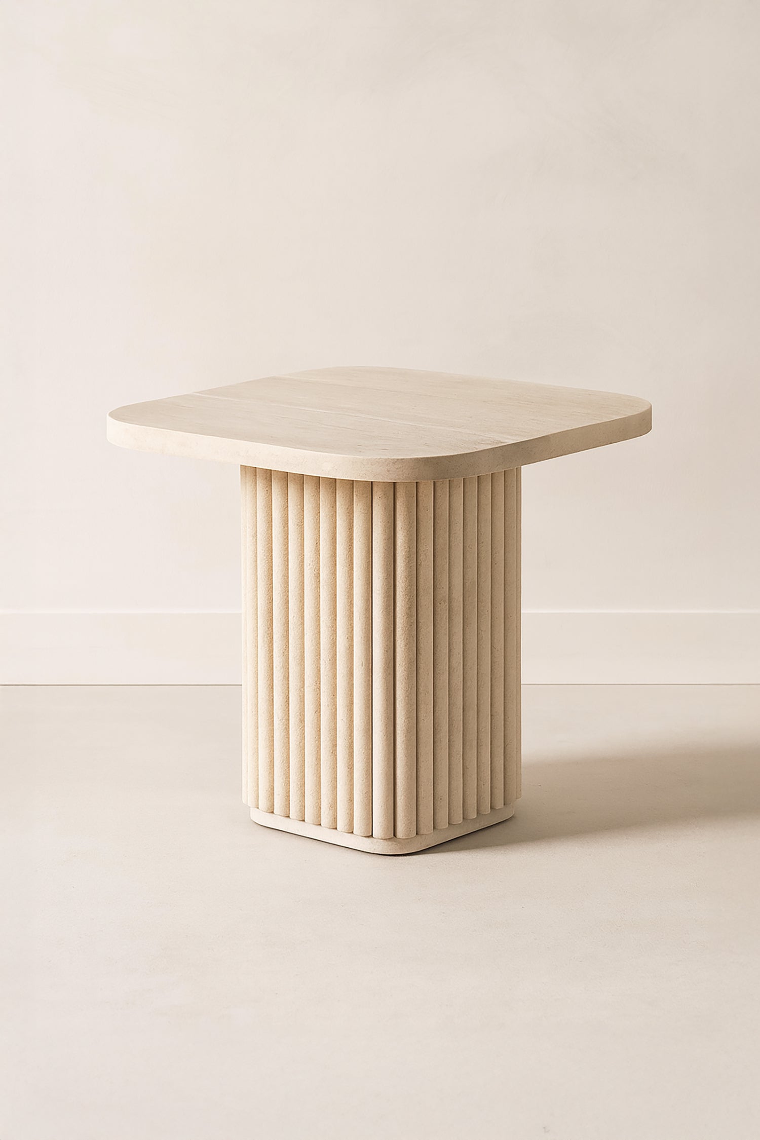 Susan - Meuble d'appoint carré effet travertin naturel